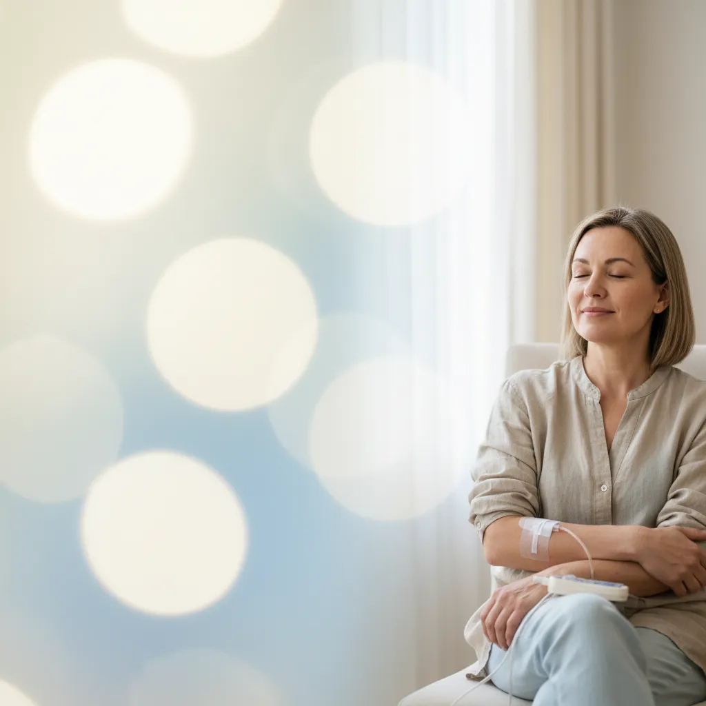 Du trenger ikke å spise noe spesielt før infusjonen, men det er bra å holde deg godt hydrert og spise normalt. Noen føler seg mer komfortable med å spise et lett måltid før behandlingen for å forhindre kvalme, selv om dette ikke er påkrevd.