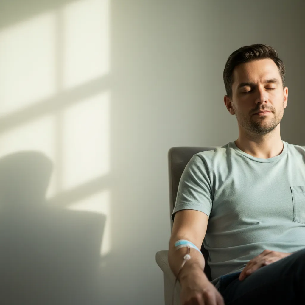 Du trenger ikke å faste før behandlingen, men det er nyttig å spise et lett måltid på forhånd for å unngå å føle deg svimmel eller svak under infusjonen. Å holde deg godt hydrert ved å drikke rikelig med vann i timene før behandlingen kan også hjelpe deg til å føle deg mer komfortabel.