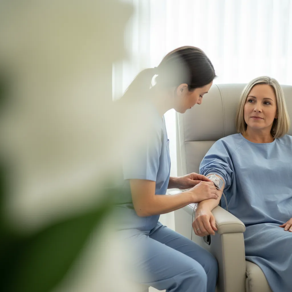 Noen merker mindre reaksjoner på injeksjonsstedet, som lett smerte, rødhet eller hevelse der IV-en ble plassert. Disse lokale reaksjonene er vanligvis milde og forsvinner i løpet av en dag eller to.