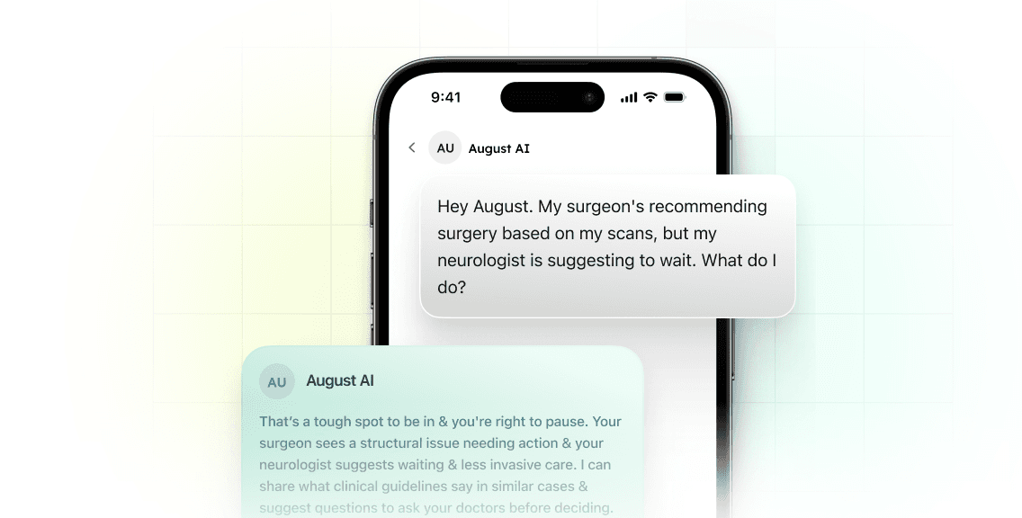 Big, scary, or unclear health decisions? Whether it’s a complex diagnosis, major treatment, or avoiding unnecessary procedures, August helps you explore evidence-based options so you have clarity, confidence & peace of mind.