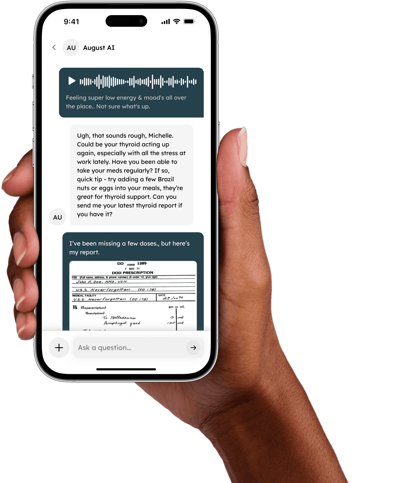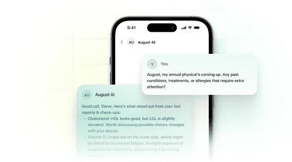 August AI has become a trusted part of my health routine. I was initially skeptical about using an AI-based service for health advice, but the system impressed me with its clarity and personalized insights. (Posted on August)