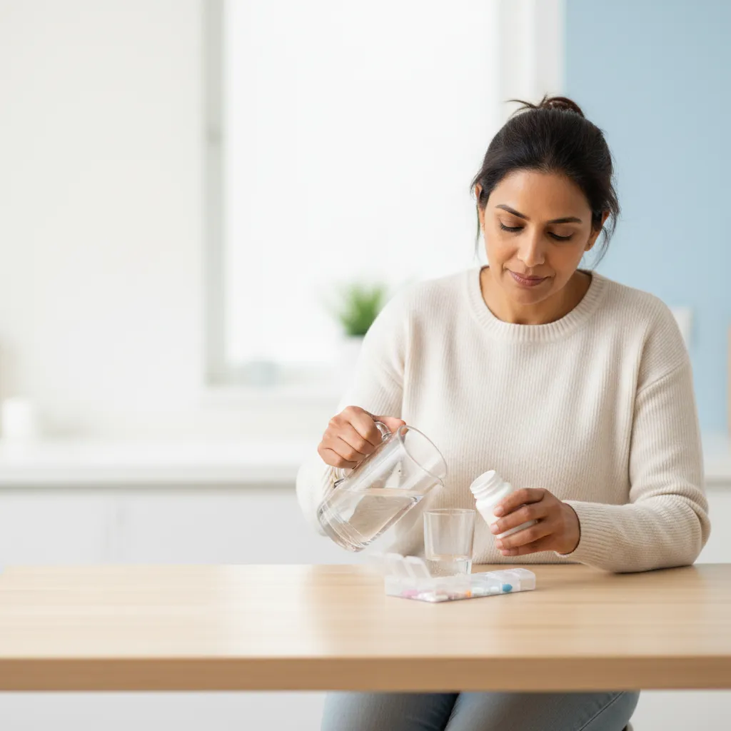 Vzemite mesno z veliko vode, da bo učinkovito delovala in podpirala delovanje vaših ledvic. Ni vam je treba jemati s hrano, vendar lahko uživanje lahkega prigrizka pomaga zmanjšati morebitne želodčne težave.