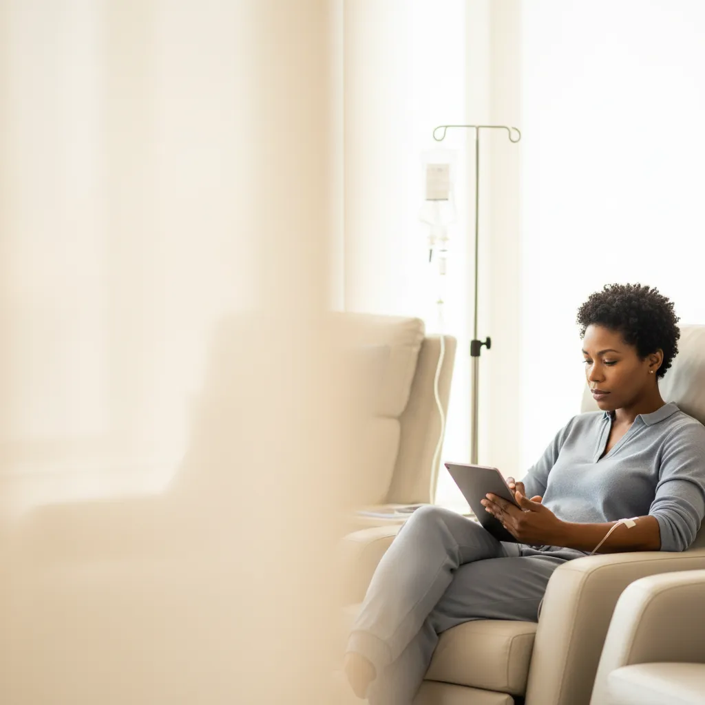 คุณไม่จำเป็นต้องอดอาหารก่อนการรักษา และคุณสามารถรับประทานอาหารได้ตามปกติในวันที่มีการให้ยา อย่างไรก็ตาม เป็นความคิดที่ดีที่จะดื่มน้ำให้เพียงพอโดยการดื่มน้ำมากๆ ก่อนและหลังการนัดหมายของคุณ บางคนพบว่าการนำขนมและสิ่งของบางอย่างมาเพื่อใช้ระหว่างการให้ยาเป็นประโยชน์